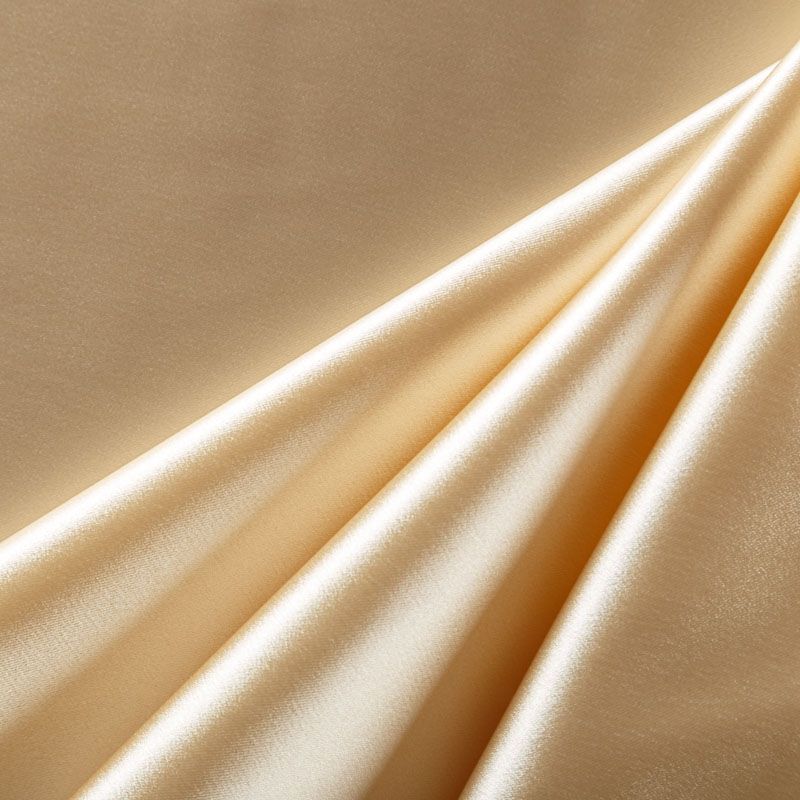 Итальянский костюмно-плательный атлас ватуссо сливочного оттенка. Ткань плотная, но пластичная, хорошо держит форму и отлично тянется, собирается в красивые складки и драпировки. Почти не мнется, очень удобный и практичный. Блеск умеренный, смотрится дорого, благородно. Подойдет для пошива прямых силуэтов-футляров, приталенных платьев с пышной юбкой и крупными драпировками, изделий с заложенными складками, нарядных изделий, вечерних костюмов, летнего пальто, юбки, для изготовления корсетов.