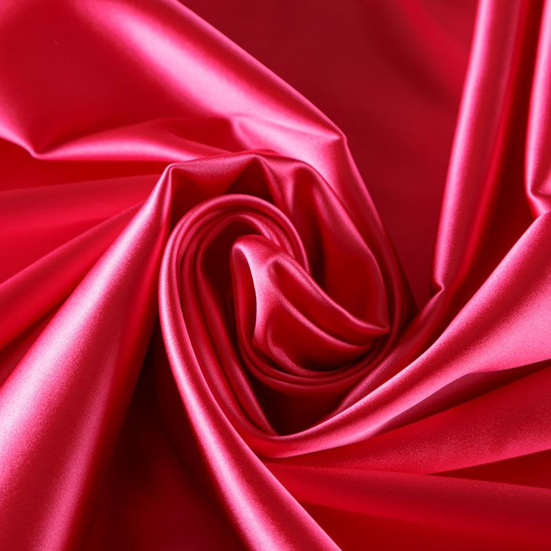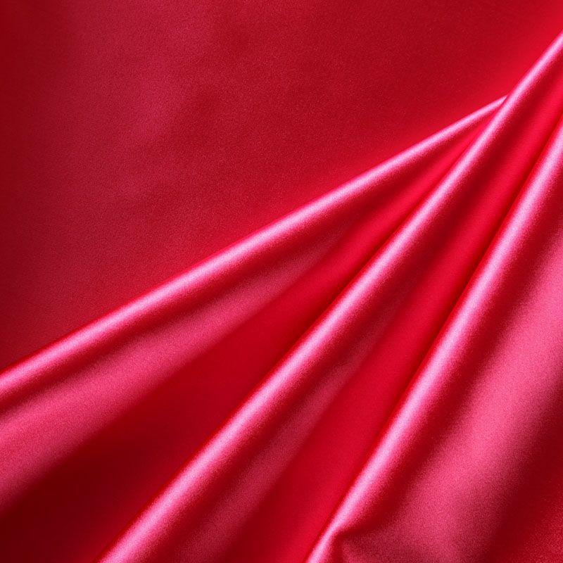 Итальянский костюмно-плательный атлас ватуссо яркого малонового оттенка. Ткань плотная, но пластичная, хорошо держит форму и отлично тянется, собирается в красивые складки и драпировки. Почти не мнется, очень удобный и практичный. Блеск умеренный, смотрится дорого, благородно. Подойдет для пошива прямых силуэтов-футляров, приталенных платьев с пышной юбкой и крупными драпировками, изделий с заложенными складками, нарядных изделий, вечерних костюмов, летнего пальто, юбки, для изготовления корсетов.