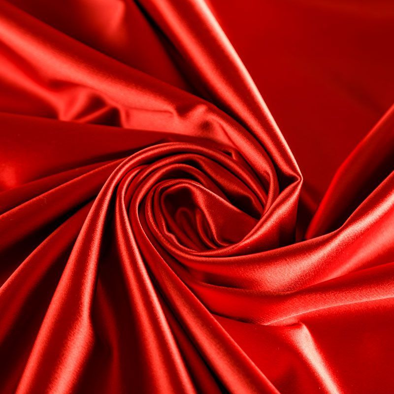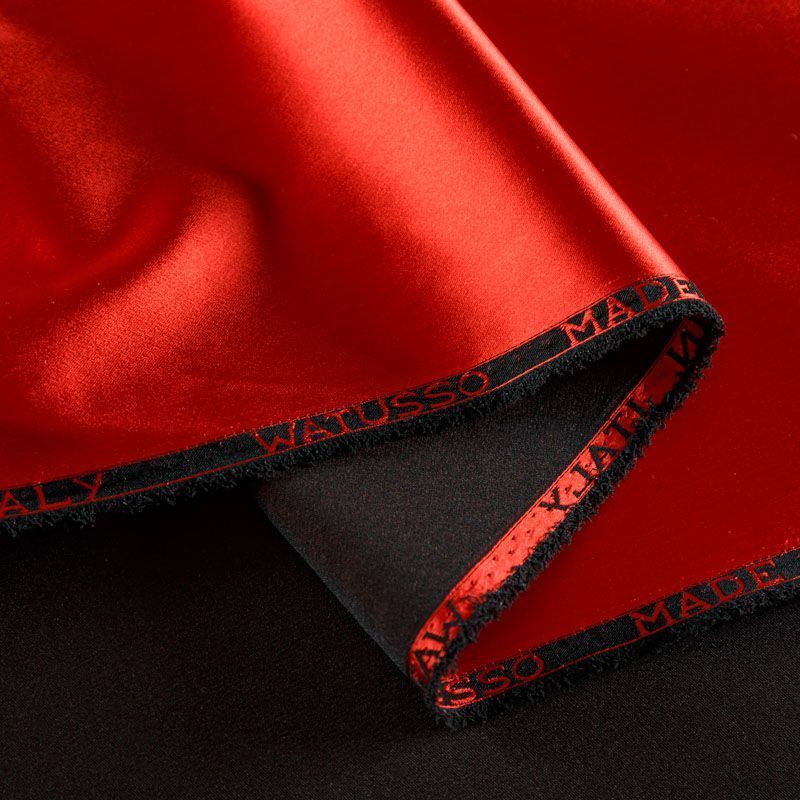 Итальянский костюмно-плательный атлас ватуссо темно-красного оттенка. Ткань плотная, но пластичная, хорошо держит форму и отлично тянется, собирается в красивые складки и драпировки. Почти не мнется, очень удобный и практичный. Блеск умеренный, смотрится дорого, благородно. Подойдет для пошива прямых силуэтов-футляров, приталенных платьев с пышной юбкой и крупными драпировками, изделий с заложенными складками, нарядных изделий, вечерних костюмов, летнего пальто, юбки, для изготовления корсетов.