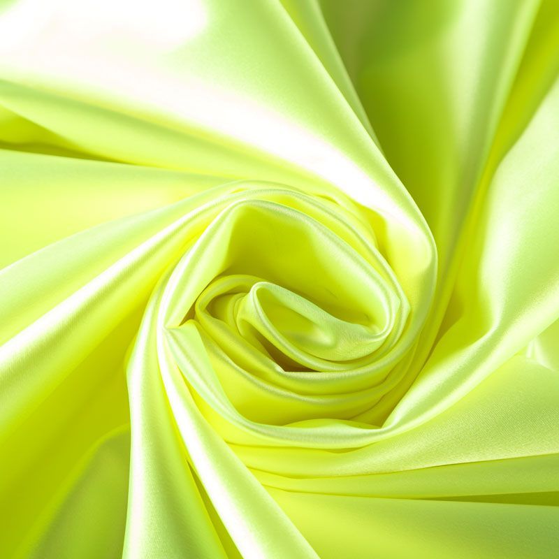 Итальянский костюмно-плательный атлас ватуссо неонового оттенка. Ткань плотная, но пластичная, хорошо держит форму и отлично тянется, собирается в красивые складки и драпировки. Почти не мнется, очень удобный и практичный. Блеск умеренный, смотрится дорого, благородно. Подойдет для пошива прямых силуэтов-футляров, приталенных платьев с пышной юбкой и крупными драпировками, изделий с заложенными складками, нарядных изделий, вечерних костюмов, летнего пальто, юбки, для изготовления корсетов.