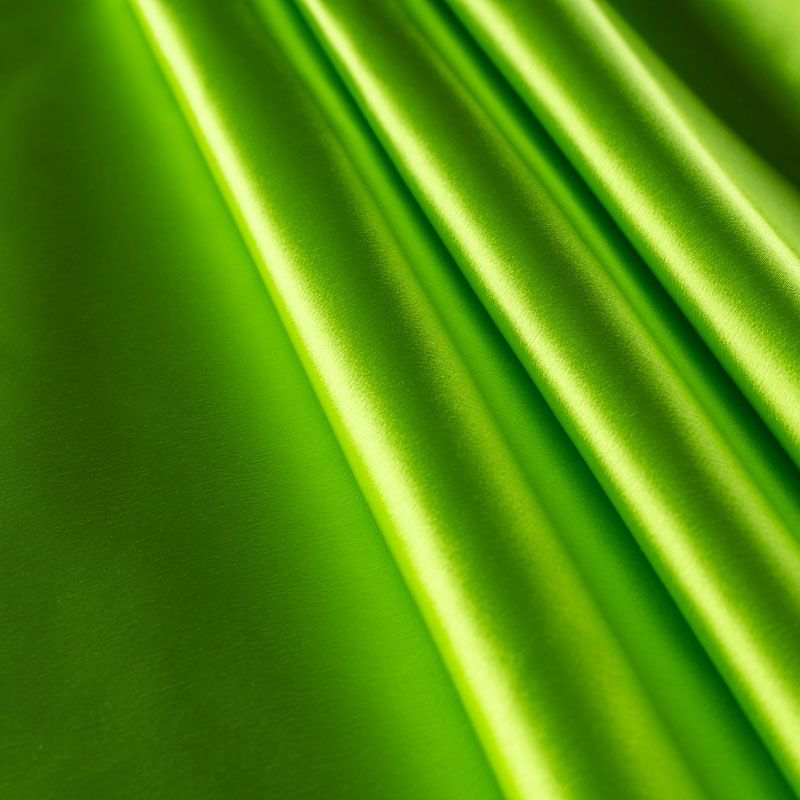 Итальянский костюмно-плательный атлас ватуссо насыщенного оттенка спелого лайма. Ткань плотная, но пластичная, хорошо держит форму и отлично тянется, собирается в красивые складки и драпировки. Почти не мнется, очень удобный и практичный. Блеск умеренный, смотрится дорого, благородно. Подойдет для пошива прямых силуэтов-футляров, приталенных платьев с пышной юбкой и крупными драпировками, изделий с заложенными складками, нарядных изделий, вечерних костюмов, летнего пальто, юбки, для изготовления корсетов.