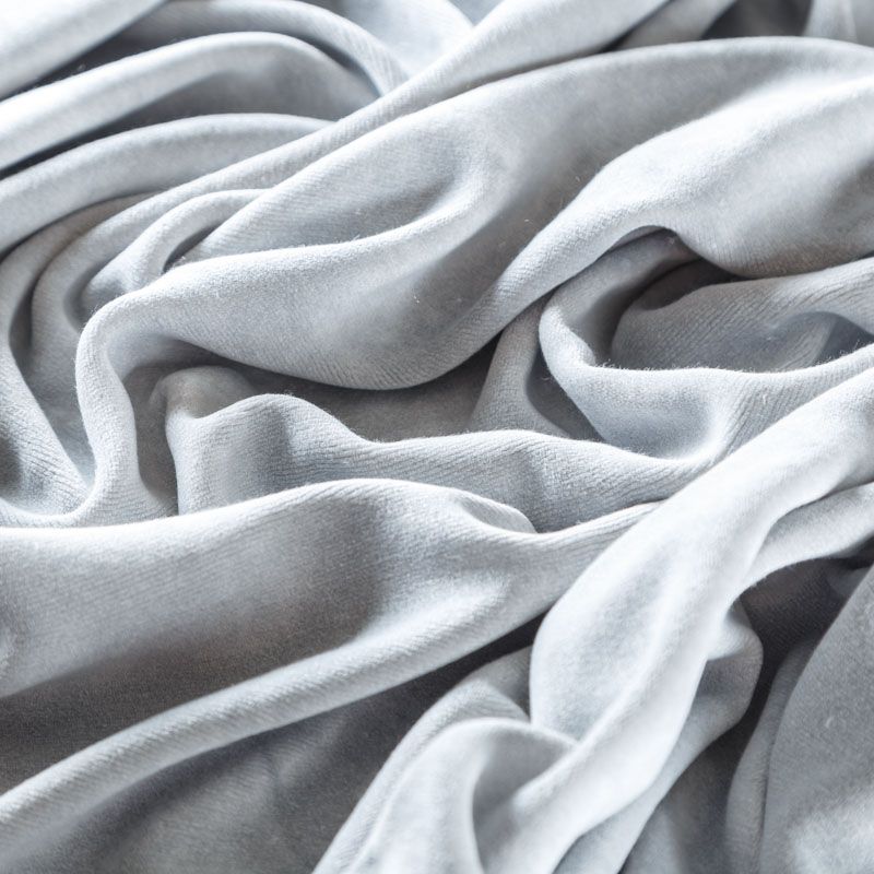 Хлопковый бархат светло-серого оттенка. Ткань плотная, мягкая с коротким ворсом. Не грубая, хорошо драпируется. Имеет благородный матовый оттенок. Подойдет для пошива нарядного костюма, жакета, юбки, жилета, шорт, комбинезонов, брюк, платья-футляр, легкого пальто или бомбера.