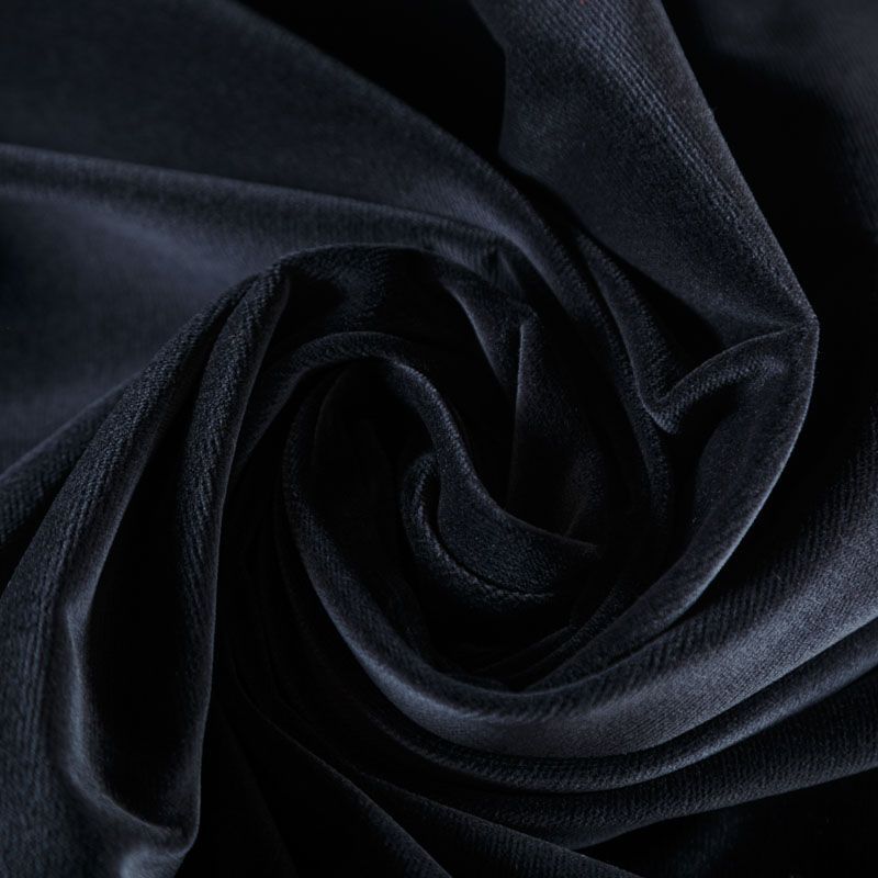 Хлопковый итальянский бархат темно-серого оттенка. Ткань плотная, мягкая с коротким ворсом. Не грубая, хорошо драпируется, тянется за счет эластана в составе. Имеет благородный матовый оттенок. Подойдет для пошива нарядного костюма, жакета, юбки, жилета, шорт, комбинезонов, брюк, платья-футляр, легкого пальто или бомбера.