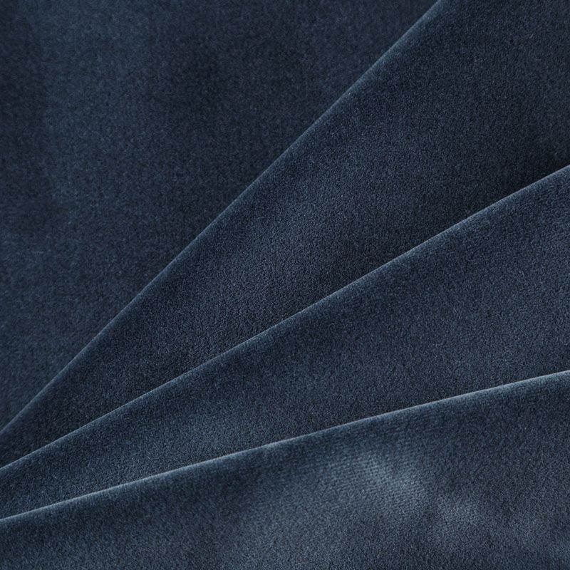 Хлопковый итальянский бархат синего оттенка. Ткань плотная, мягкая с коротким ворсом. Не грубая, хорошо драпируется. Имеет благородный матовый оттенок. Подойдет для пошива нарядного костюма, жакета, юбки, жилета, шорт, комбинезонов, брюк, платья-футляр, легкого пальто или бомбера.