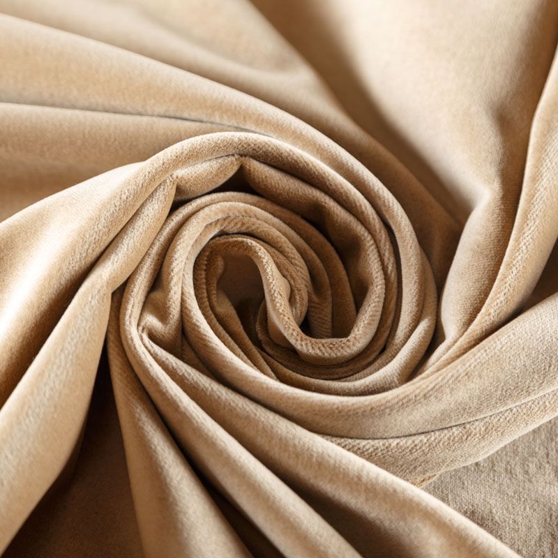 Хлопковый итальянский бархат бежевого оттенка. Ткань плотная, мягкая с коротким ворсом. Не грубая, хорошо драпируется. Имеет благородный матовый оттенок. Подойдет для пошива нарядного костюма, жакета, юбки, жилета, шорт, комбинезонов, брюк, платья-футляр, легкого пальто или бомбера.