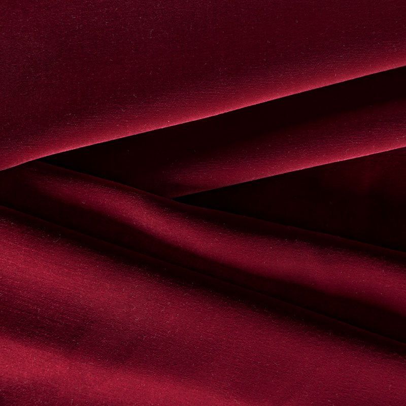 Итальянский бархат в сочном вишневом оттенке. Ткань легкая, пластичная, мягкая, с коротким и блестящим ворсом, имеющим направление, очень приятная на ощупь, прекрасно драпируется. Подойдет для платья, юбки, туники, блузки, комбинезона, свободных брюк и костюма свободного кроя.