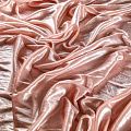 Бархат с небольшим ворсом пудрового оттенка с эффектом люрекса. Ткань очень приятна на ощупь, не мнется, мягкая, нежная, хорошо тянется и драпируется. Цвет играет отблесками и полутонами. Бархат идеально подходит для пошива вечерних платьев, юбок, костюмов, а также стильных аксессуаров.