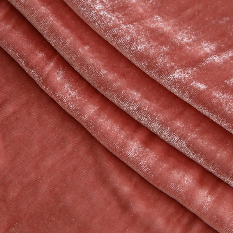 Итальянский бархат из шелка и вискозы. Ткань средней плотности, мягкая и гладкая на ощупь, с легким блеском, хорошо драпируется, струится. Идеальна для пошива платья, юбки, костюма в пижамном стиле, кимоно, туники.