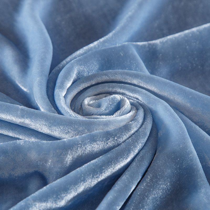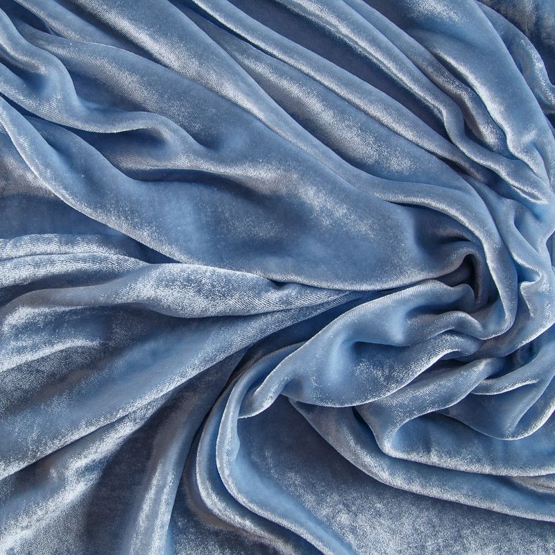 Итальянский бархат из шелка и вискозы. Ткань средней плотности, мягкая и гладкая на ощупь, с легким блеском, хорошо драпируется, струится. Идеальна для пошива платья, юбки, костюма в пижамном стиле, кимоно, туники.
