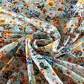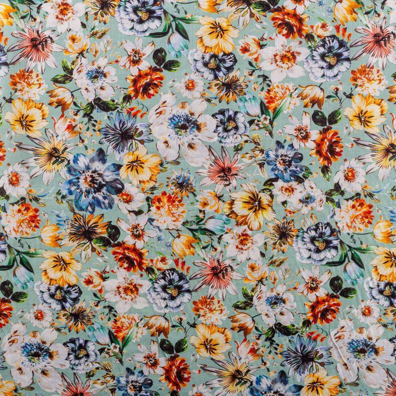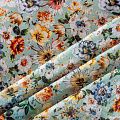 Итальянский хлопковый батист с цветочным принтом на освежающем мятном фоне. Ткань очень легкая, прозрачная, приятная на ощупь, нежная, пластичная, хорошо и мягко драпируется, летящая. Батист подойдёт для модных блуз с объёмными рукавами, летних платьев и сарафанов с длинной летящей юбкой, прозрачных рубашек, декорированных объёмными бантами, туник и топов.
