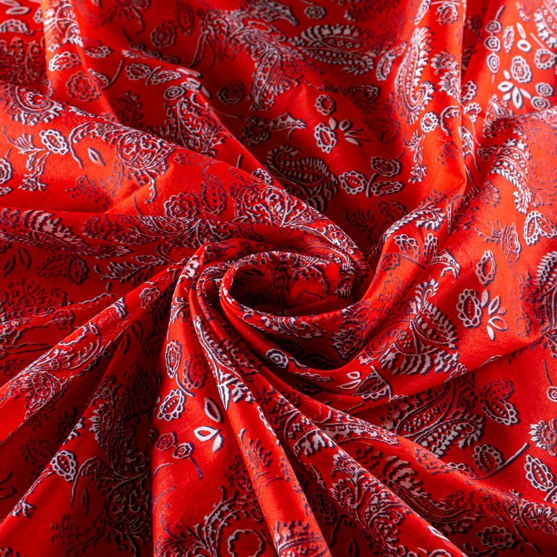 Итальянский хлопковый батист с мелким цветочным принтом в черно-белой гамме на ярком красном фоне. Ткань очень легкая, прозрачная, приятная на ощупь, нежная, пластичная, хорошо и мягко драпируется, летящая. Батист подойдёт для модных блуз с объёмными рукавами, летних платьев и сарафанов с длинной летящей юбкой, прозрачных рубашек, декорированных объёмными бантами, туник и топов.