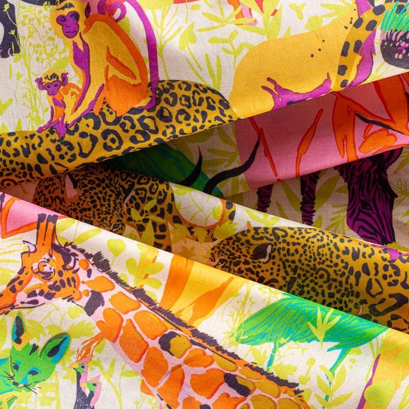 Яркий хлопковый батист с разноцветным принтом в стиле сафари. Ткань очень легкая, прозрачная, приятная на ощупь, нежная, пластичная, хорошо и мягко драпируется, летящая. Батист подойдёт для модных блуз с объёмными рукавами, летних платьев и сарафанов с длинной летящей юбкой, прозрачных рубашек, декорированных объёмными бантами, туник и топов.