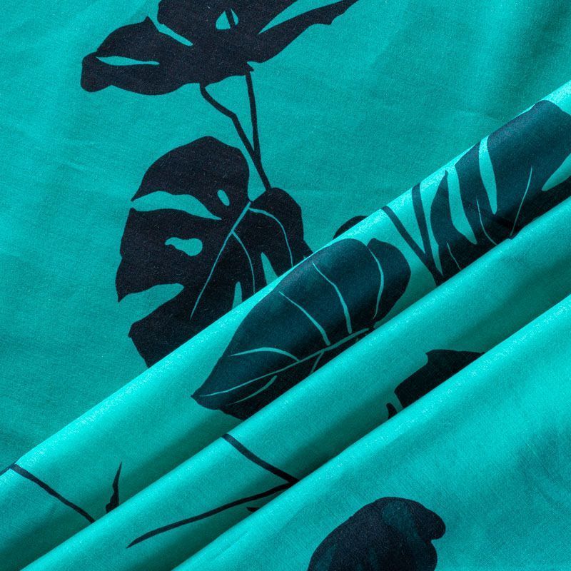 Итальянский хлопковый батист насыщенного бирюзового цвета с растительным прринтом. Ткань очень легкая, прозрачная, приятная на ощупь, нежная, пластичная, хорошо и мягко драпируется, летящая. Батист подойдёт для модных блуз с объёмными рукавами, летних платьев и сарафанов с длинной летящей юбкой, прозрачных рубашек, декорированных объёмными бантами, туник и топов.