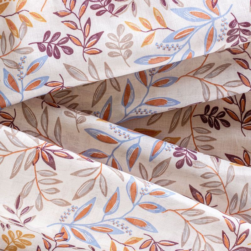 Итальянский хлопковый батист с растительным принтом в бежево-коричневых оттенках на белом фоне. Ткань очень легкая, прозрачная, приятная на ощупь, нежная, пластичная, хорошо и мягко драпируется, летящая. Батист подойдёт для модных блуз с объёмными рукавами, летних платьев и сарафанов с длинной летящей юбкой, прозрачных рубашек, декорированных объёмными бантами, туник и топов.