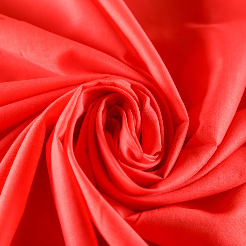 Итальянский хлопковый батист в красном оттенке, тонкий, легкий, полупрозрачный, приятный на ощупь, нежный, хорошо и мягко драпируется, летящий. Батист подойдёт для модных блуз с объёмными рукавами, летних платьев и сарафанов с длинной летящей юбкой, прозрачных рубашек, декорированных объёмными бантами, детской одежды.