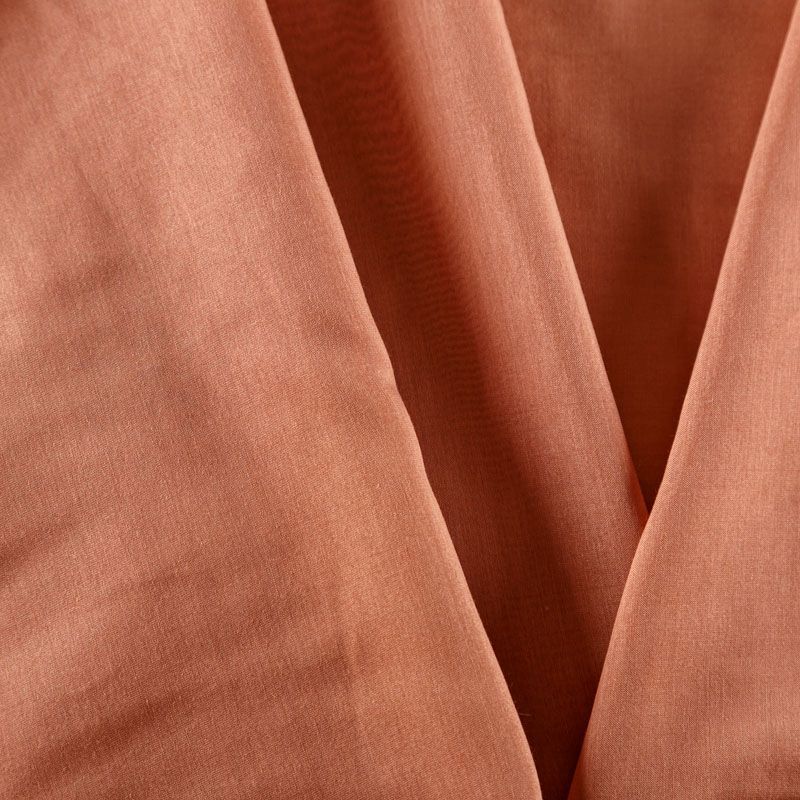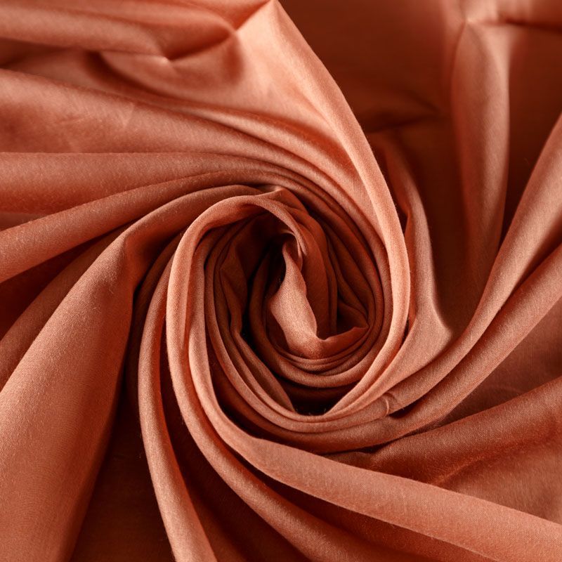 Итальянский хлопковый батист в терракотовом оттенке, тонкий, легкий, полупрозрачный, приятный на ощупь, нежный, хорошо и мягко драпируется, летящий. Батист подойдёт для модных блуз с объёмными рукавами, летних платьев и сарафанов с длинной летящей юбкой, прозрачных рубашек, декорированных объёмными бантами, детской одежды.
