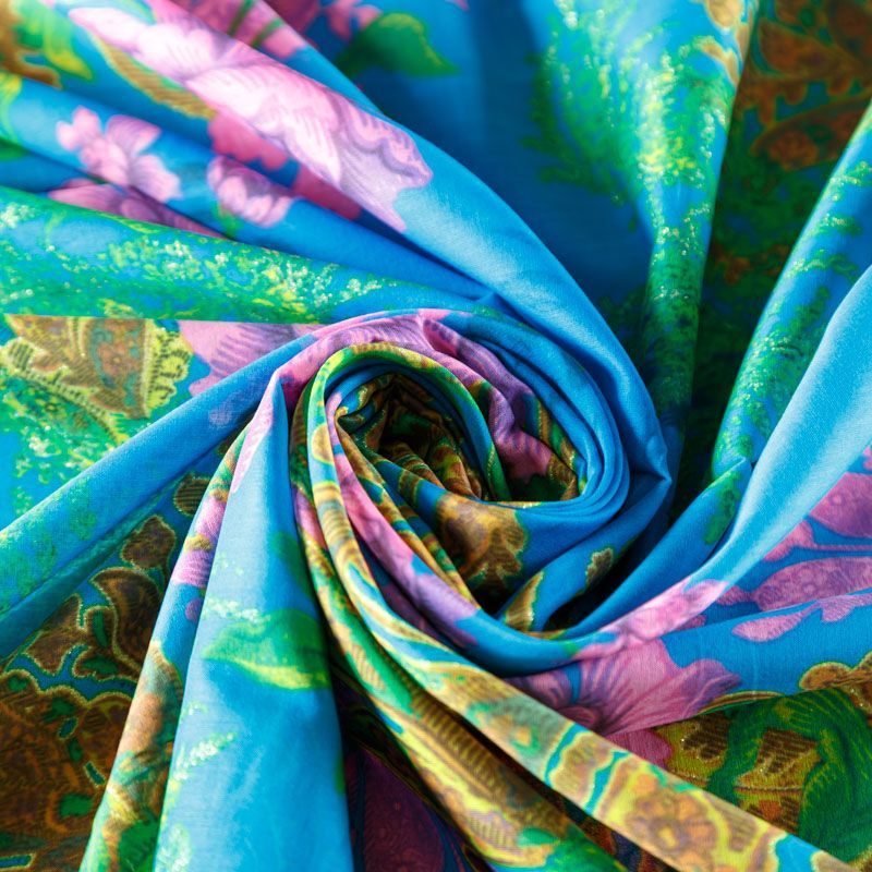 Итальянский хлопковый батист с ярким принтом в желтых, сиреневых и зеленых оттенках. Ткань очень легкая, прозрачная, приятная на ощупь, нежная, пластичная, хорошо и мягко драпируется, летящая. Батист подойдёт для модных блуз с объёмными рукавами, летних платьев и сарафанов с длинной летящей юбкой, прозрачных рубашек, декорированных объёмными бантами, туник и топов.