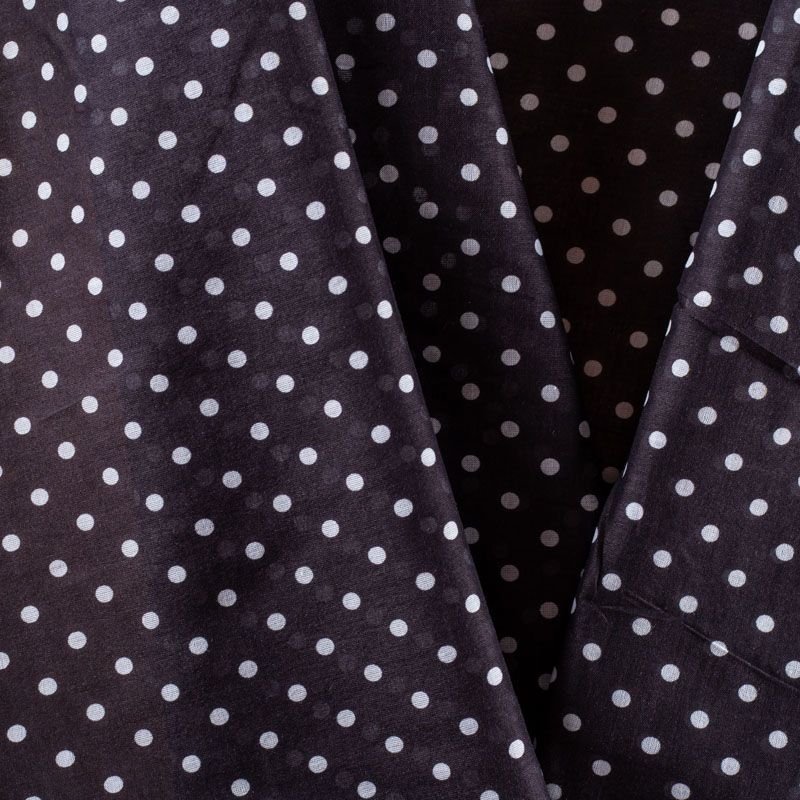 Итальянский хлопковый батист черного цвета с классическим принтом "в горох". Ткань очень легкая, прозрачная, приятная на ощупь, нежная, пластичная, хорошо и мягко драпируется, летящая. Батист подойдёт для модных блуз с объёмными рукавами, летних платьев и сарафанов с длинной летящей юбкой, прозрачных рубашек, декорированных объёмными бантами, туник и топов.