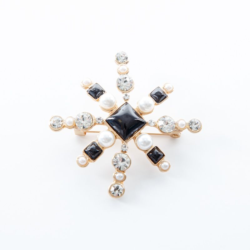 Брошь декоративная 55х30 мм стразы ACS0477 золотой/черный в Казани