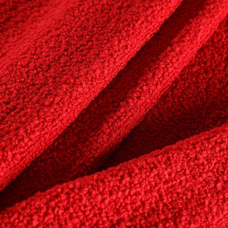 Итальянское шерстяное букле насыщенного красного оттенка. Ткань очень мягкая, достаточно плотная, на вид объемная, хорошо держит тепло. Красивая фактура из кудрявого ворса эффектно будет смотреться в таких изделиях как пальто на осень, жакет, жилет, бомбер, куртка-рубашка.