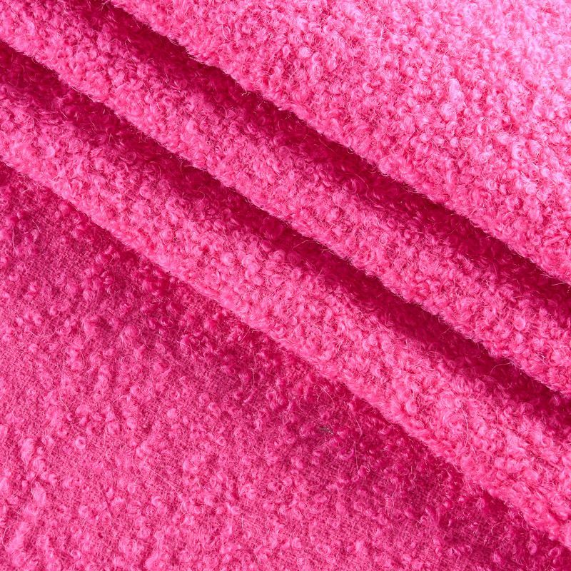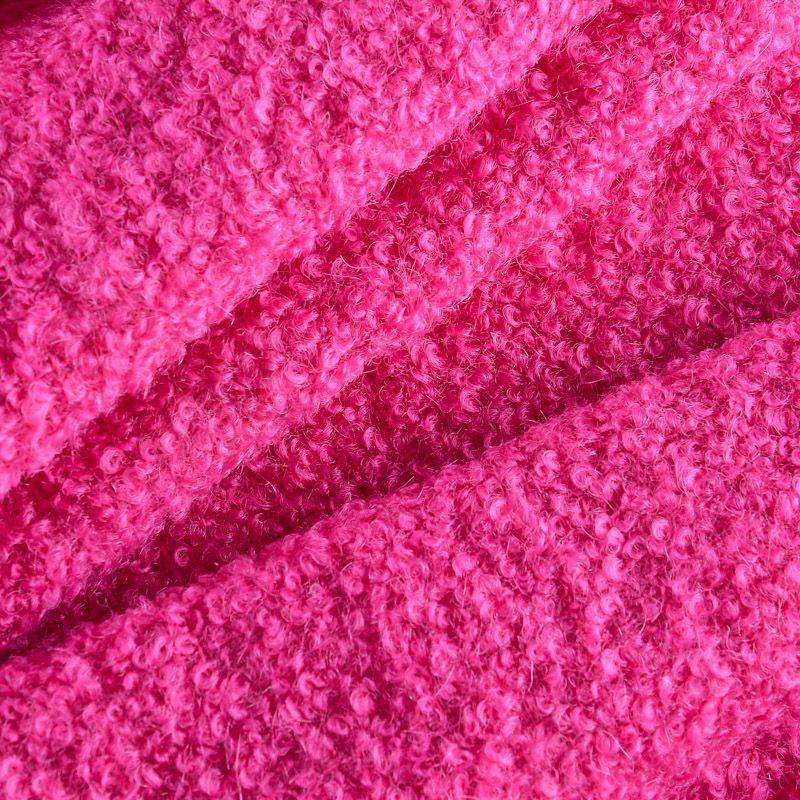 Итальянская мягкая, уютная и теплая шерстяная ткань с буклированной поверхностью розового оттенка. Полотно пластичное, нежное, не мнется, отлично драпируется, устойчиво к деформации. Отлично подойдет на пальто, кардиган, пончо, бомбер, теплый костюм и другие виды верхней одежды.
