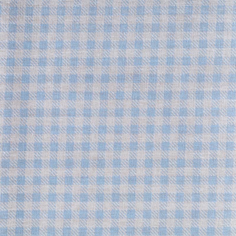 Плотная натуральная ткань с особым принципом переплетения нитей: крест-накрест. Имеет гладкую матовую поверхность чуть шероховатую на ощупь, не тянется, немного просвечивает. Прочная и стойкая к износу, надолго сохраняет яркость красок, не растягивается при стирке, практически не мнется. Рисунок в мелкую клеточку голубого цвета на белом фоне прекрасно подойдет для пошива постельного белья, изготовления пеленок, бортиков для кроватки, домашней одежды и других предметов интерьера.