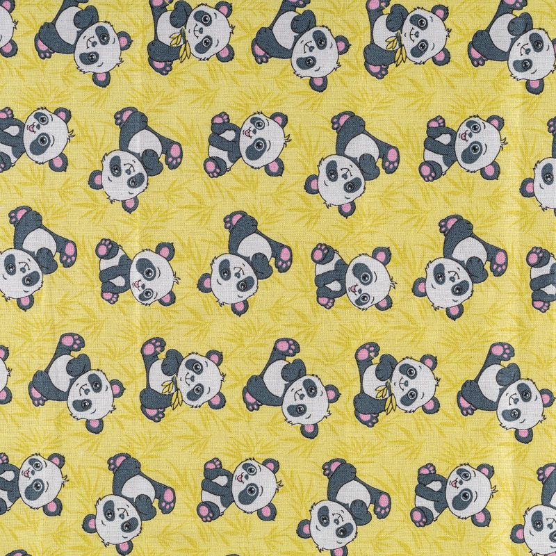Плотная натуральная ткань с особым принципом переплетения нитей: крест-накрест. Имеет гладкую матовую поверхность, немного шероховатая на ощупь, не тянется, немного просвечивает. Прочная и стойкая к износу, надолго сохраняет яркость красок, практически не мнется. Милый детский принт в виде черно-белых панд на теплом желтом фоне прекрасно подойдет для пошива постельного белья, изготовления пеленок, бортиков для кроватки, домашней одежды и других предметов интерьера.