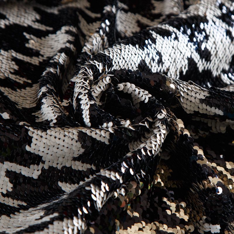 Двухстронние пайетки на сетке 055-16859 черно-белый/золото в Казани