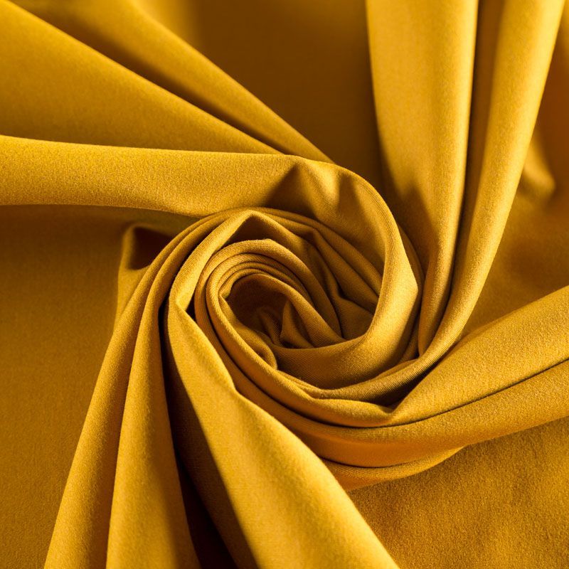 Плотное трикотажное полотно. Обе стороны ткани ровные, гладкие. Материал эластичный, имеет растяжимость по всем сторонам, хорошо держит форму, уютный, приятный к телу и удобный в носке. Применяется в пошиве платьев, юбок, костюмов, жакетов.