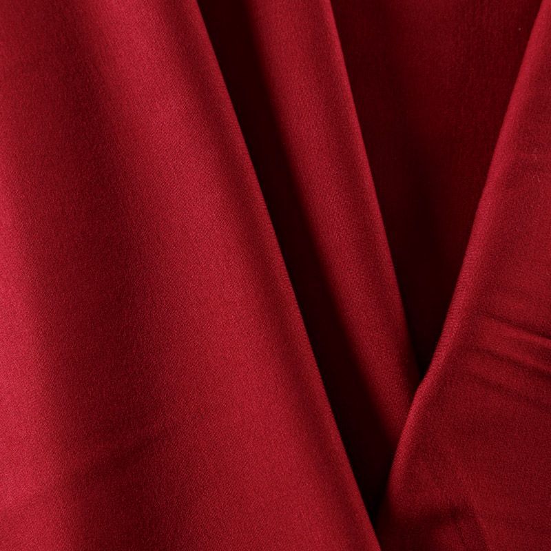 Вискозное трикотажное полотно средней плотности. Обе стороны ткани ровные, гладкие. Материал эластичный, упругий, имеет растяжимость по всем сторонам, держит форму, уютный, приятный к телу и удобный в носке. Применяется в пошиве платьев, юбок, костюмов, жакетов.