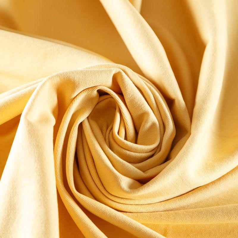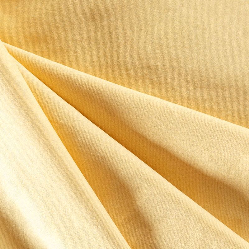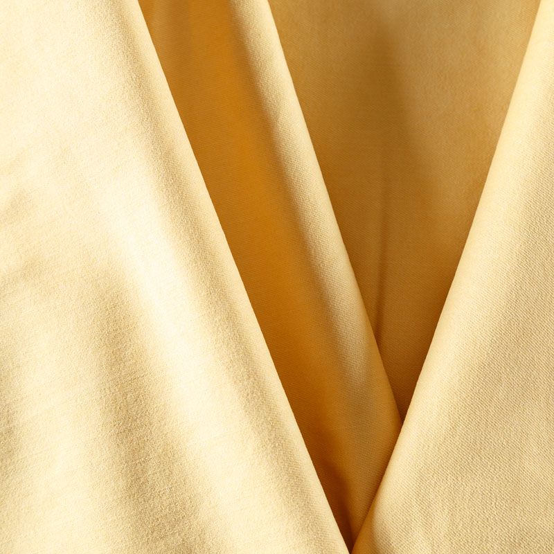 Итальянская плотная джинсовая ткань желтого оттенка. Материал имеет высокую плотность, при небольшой толщине, мягкий и приятный на ощупь, эластичный, обладает устойчивостью к истиранию и механическим повреждениям. Подойдет для пошива рубашек, сарафанов, платьев, юбок, шорт, брюк-джоггеров, лёгких курток и жакетов.