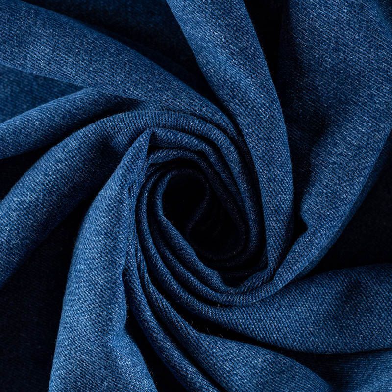 Плотная джинсовая ткань, деним соткан методом джинсового плетения, при котором окрашены только нити основы, а волокна утка - всегда белые. Так получается оригинальный разбеленный оттенок денима, который является особенностью джинсовых материалов. Материал имеет высокую плотность, при небольшой толщине, мягкий и приятный на ощупь, обладает устойчивостью к истиранию и механическим повреждениям. Подойдет для пошива рубашек, сарафанов, платьев, юбок, шорт, брюк-джоггеров, лёгких курток и жакетов.