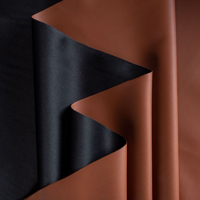 Искусственный материал, имитирующий натуральную кожу, на трикотажной основе. Изнаночная сторона - черного цвета. Экокожа тоньше натуральной, не мнется, пластична, тянется, хорошо облегает фигуру. Подойдет для пошива куртки, костюма, платья, юбки, брюк, шорт, комбинезона, сумки, рюкзака.