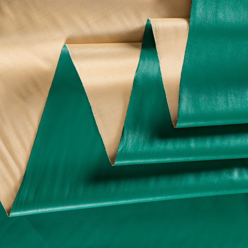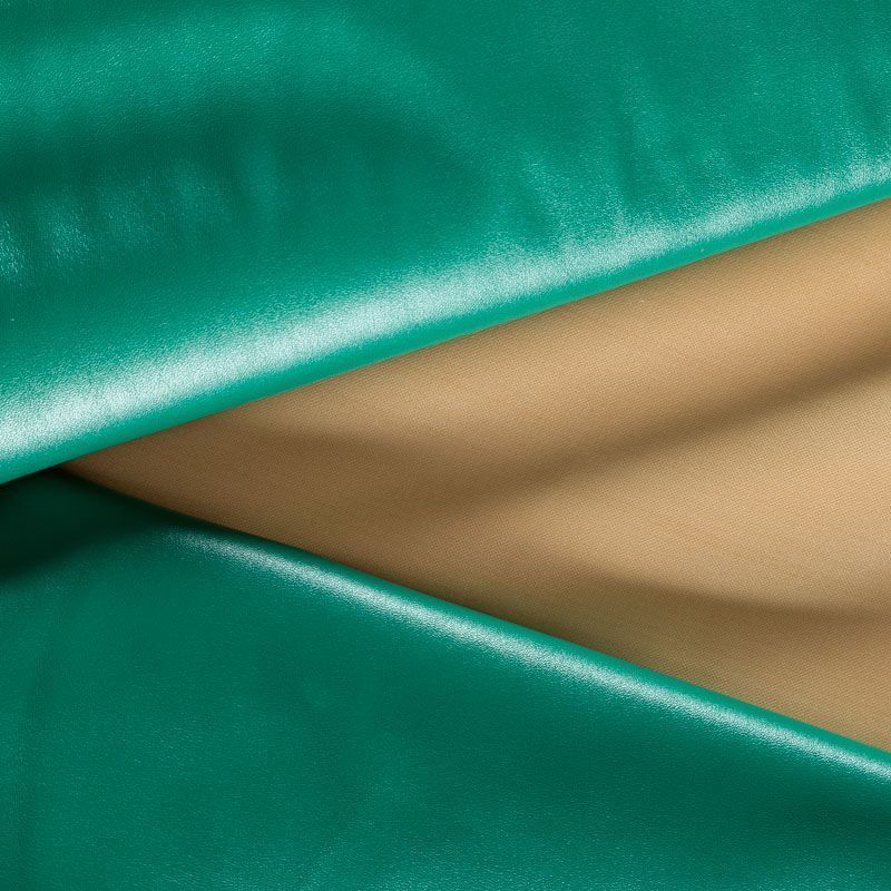 Искусственный материал, имитирующий натуральную кожу, на трикотажной основе. Изнаночная сторона - телесного оттенка. Экокожа тоньше натуральной, не мнется, пластична, тянется, хорошо облегает фигуру. Подойдет для пошива куртки, костюма, платья, юбки, брюк, шорт, комбинезона, сумки, рюкзака.