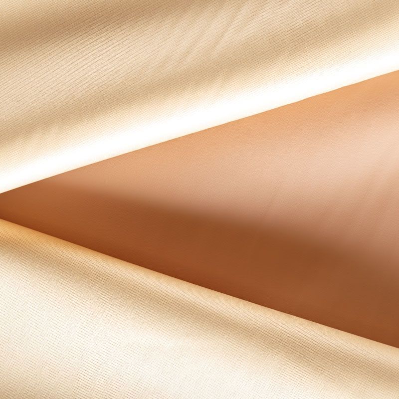 Искусственный материал, имитирующий натуральную кожу, на светлой трикотажной основе. Экокожа тоньше натуральной, не мнется, пластична, хорошо тянется за счет эластана в составе, облегает фигуру. Подойдет для пошива куртки, костюма, платья, юбки, брюк, шорт, комбинезона, сумки, рюкзака.