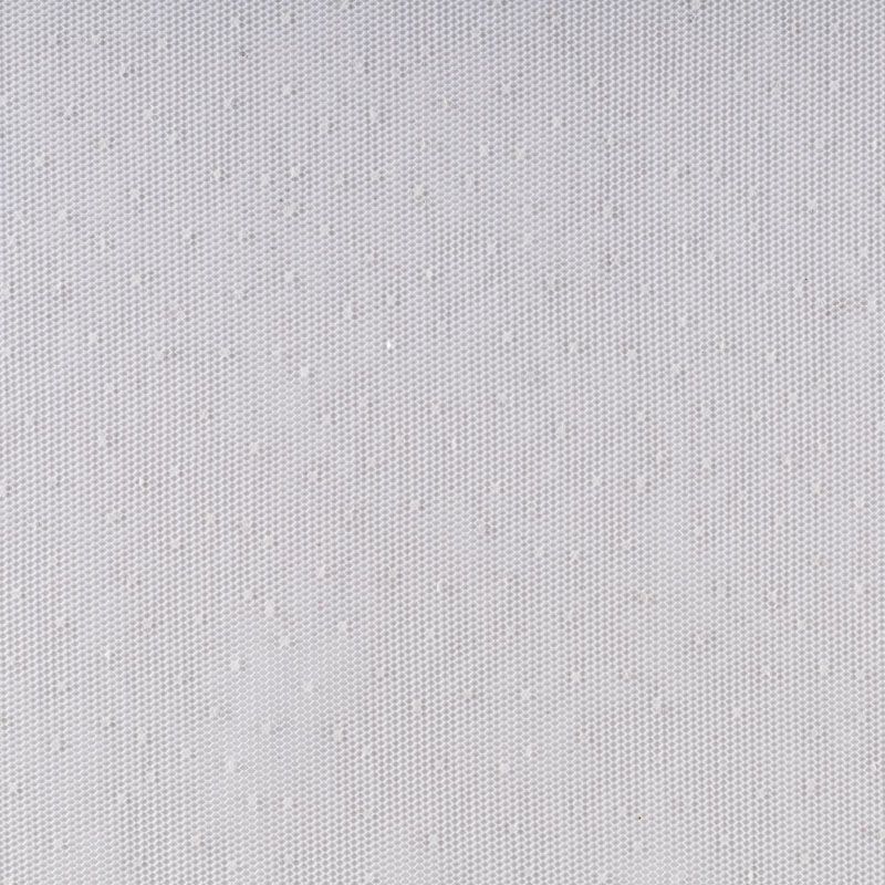 Полотно мягкое и матовое с искрящимися блестками. Неплохо драпируется в  слегка держащие форму складки, имеет мелкое сетчатое плетение, прияный на ощупь. Подойдет для пошива платья, юбки-пачки, фаты и других коктейльных и вечерних нарядов или аксессуаров.