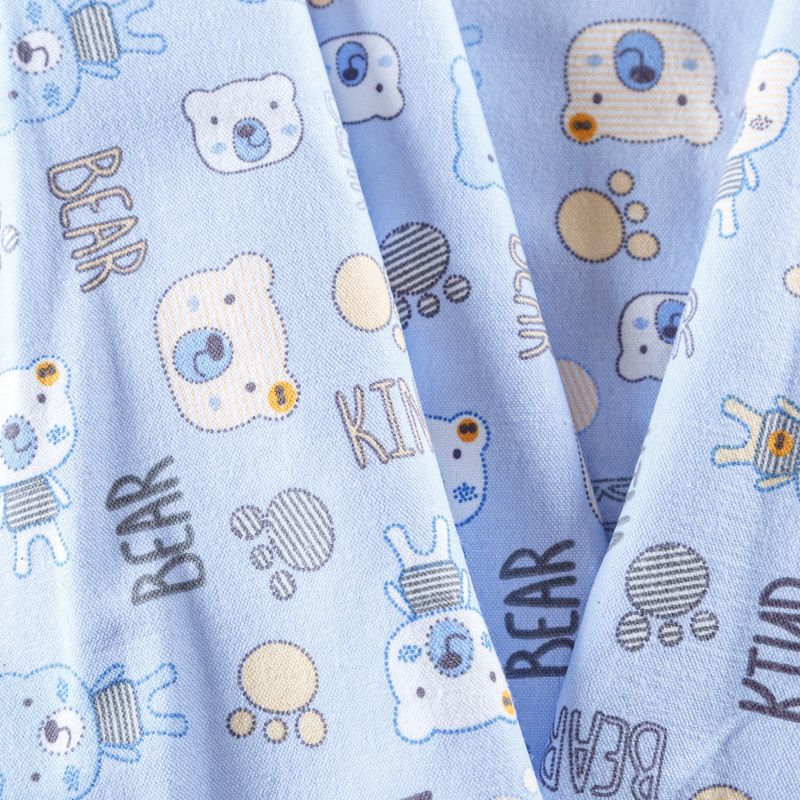 Износостойкий мягкий материал, не раздражает кожу, не садится, отлично впитывает влагу и хорошо удерживает тепло. На лицевой стороне мягкий ворс. Милый детский принт прекрасно подойдет для пошива постельного белья, изготовления пеленок, бортиков для кроватки, домашней одежды, пижамы и других предметов интерьера.