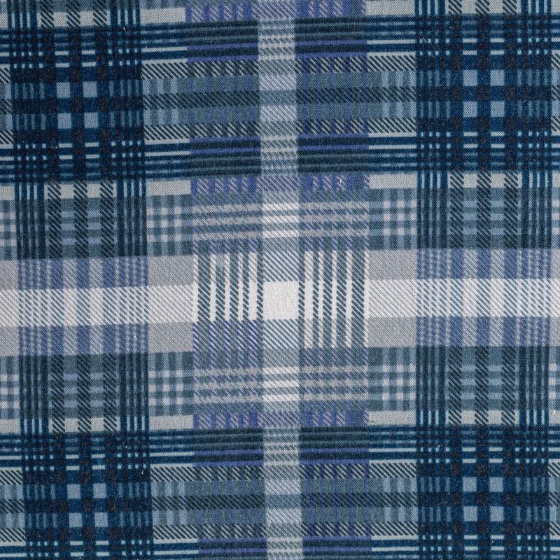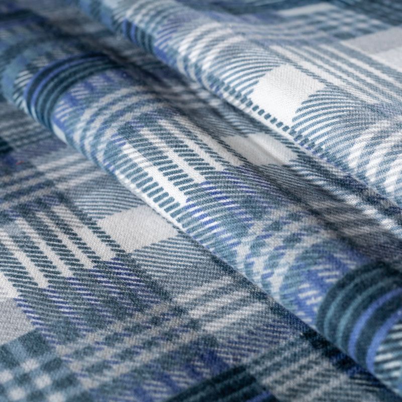 Износостойкий мягкий материал, не раздражает кожу, не садится, отлично впитывает влагу и хорошо удерживает тепло. На лицевой стороне мягкий ворс. Классический клетчатый принт с серо-голубых оттенках прекрасно подойдет для пошива домашней одежды, теплой пижамы, халата, рубашек различного фасона.