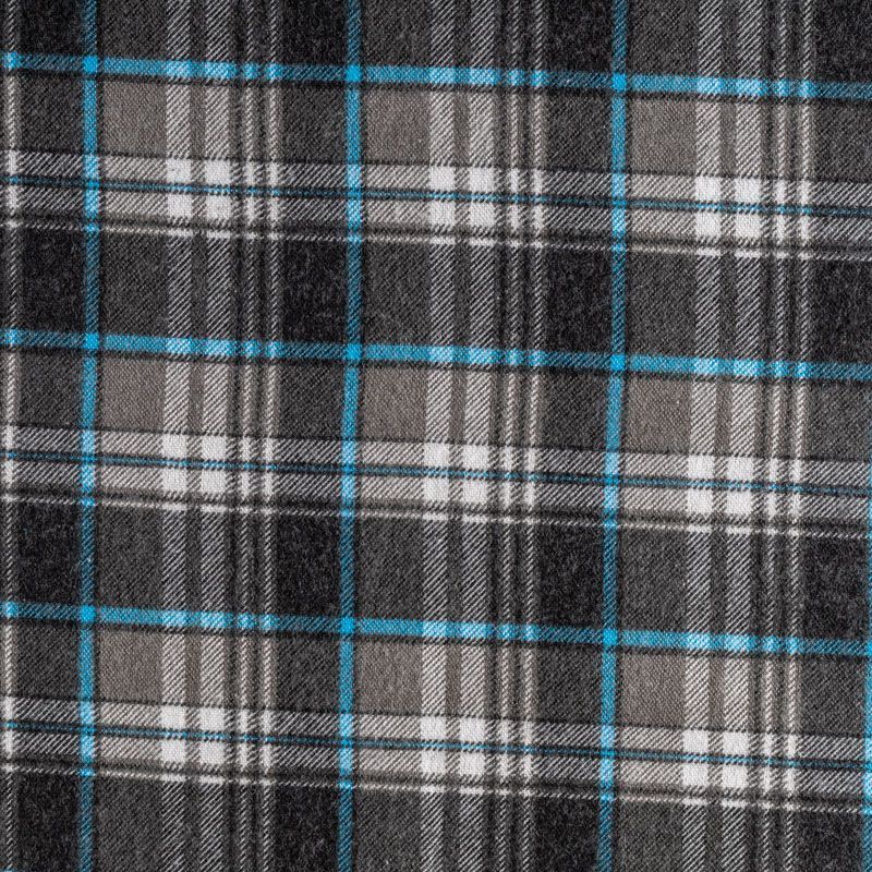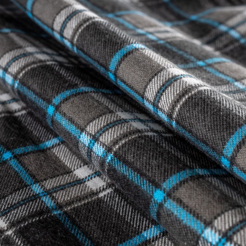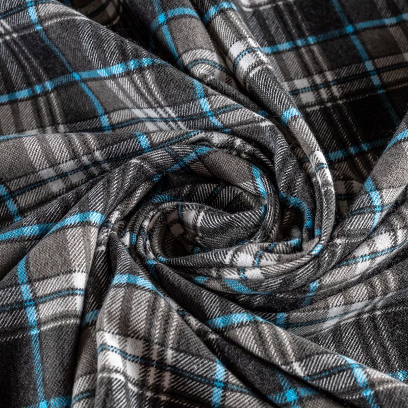 Износостойкий мягкий материал, не раздражает кожу, не садится, отлично впитывает влагу и хорошо удерживает тепло. На лицевой стороне мягкий ворс. Классический клетчатый принт с серо-голубых оттенках прекрасно подойдет для пошива домашней одежды, теплой пижамы, халата, рубашек различного фасона.