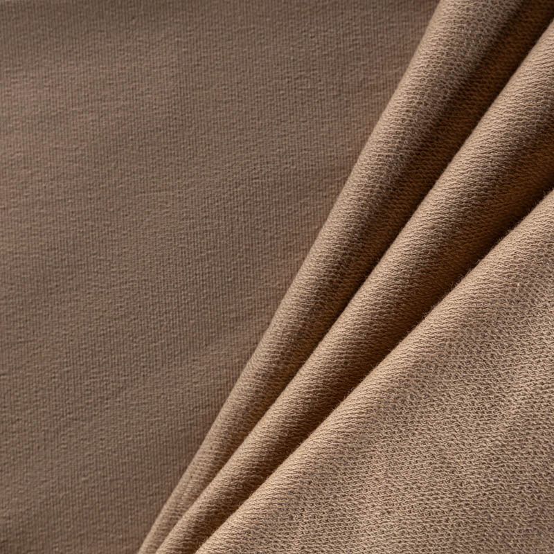 Плотный, но мягкий эластичный трикотаж. Лицевая сторона гладкая, без блеска, мелкой вязки. Изнанка – с небольшим однородным ворсом или петля. Прекрасный вариант для пошива платьев и костюмов, легких толстовок, свитшотов, спортивной, детской и  домашней одежды.