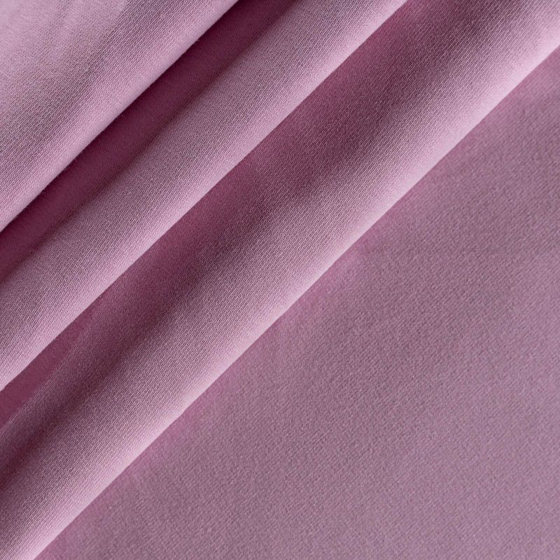 Плотный, но мягкий эластичный трикотаж. Лицевая сторона гладкая, без блеска, мелкой вязки. Изнанка – с небольшим однородным ворсом или петля. Прекрасный вариант для пошива платьев и костюмов, легких толстовок, свитшотов, спортивной, детской и  домашней одежды.