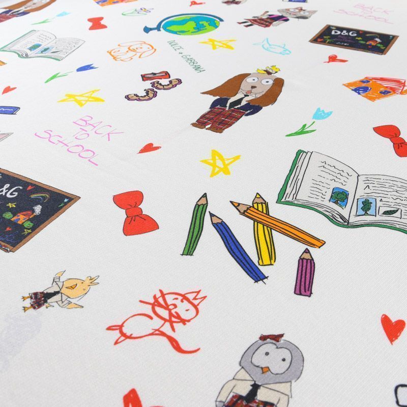 Итальянский футер с ярким игривым принтом на белом фоне от известного бренда. Материал гладкий с лицевой стороны, с изнаночной стороны имеет нежную мелкую петельчатую текстуру. Ткань мягкая и комфортная, достаточно эластичная, пластичная. Хорошо садится по фигуре. Практически не мнется. После растяжения быстро возвращается к прежней форме. Подойдет для пошива толстовки, спортивного костюма, джоггеров, шорт, свитшота, кроп-топа, платья в спортивном стиле.