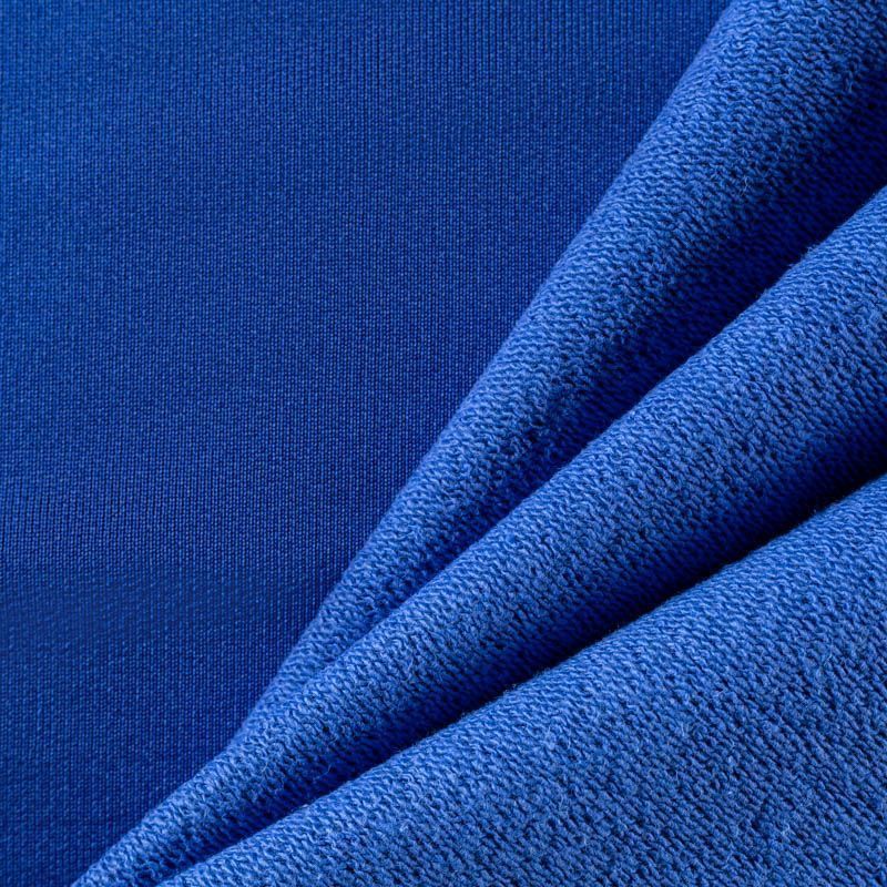 Материал гладкий с лицевой стороны, с изнаночной стороны имеет нежную мелкую петельчатую текстуру. Ткань мягкая и комфортная, достаточно эластичная, пластичная. Хорошо садится по фигуре. Практически не мнется. После растягивания быстро возвращается к прежней форме. Подойдет для пошива толстовки, спортивного костюма, свитшота, платья в спортивном стиле.