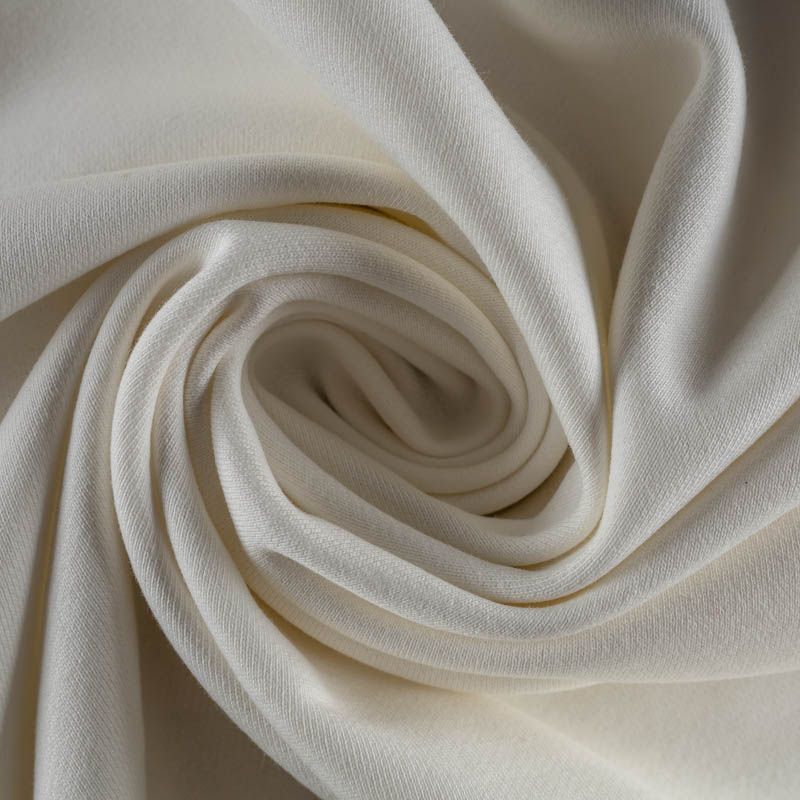 Плотный, но легкий и мягкий, с начесом по изнанке. Ткань хорошо тянется, прочная и износостойкая.  Лицевая сторона имеет выраженную трикотажную структуру. Подходит для пошива утепленных  спортивных костюмов, свитшотов, джемперов.
