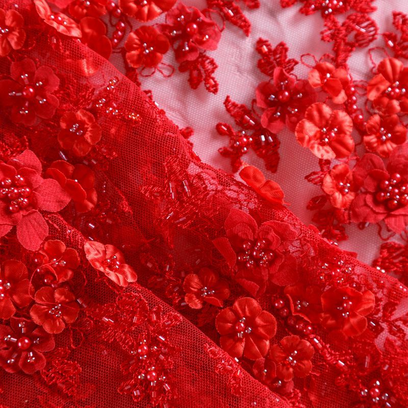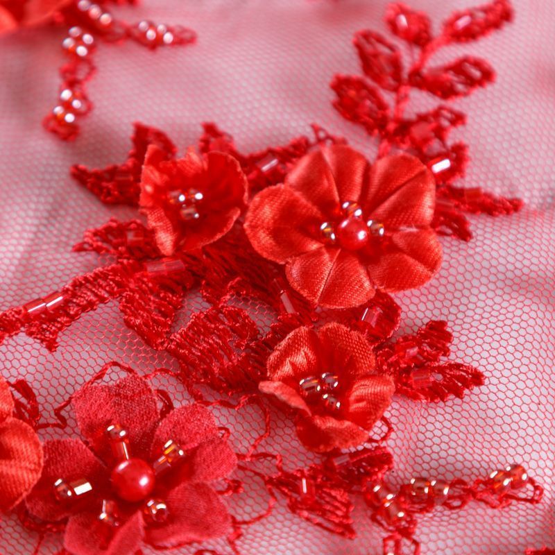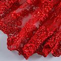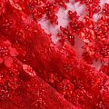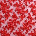 Вышивка на сетке красного оттенка с флористическим узором. Полотно мягкое, легкое и пластичное, хорошо тянется. Сетка не жесткая, приятная к телу. Узор вышит мягкой пряжей, образуя красивую фактуру, имитирующую ручную вышивку, и оформлен бисером, стеклярусом и объемными алтасными цветами. С обеих сторон ткань украшена симметричными фестонами, что придает полотну законченный и нарядный вид. Великолепно будет смотреться в нарядном вечернем платье, платье на выпускной бал, в блузках, топах. Набирается для изделия объемом.