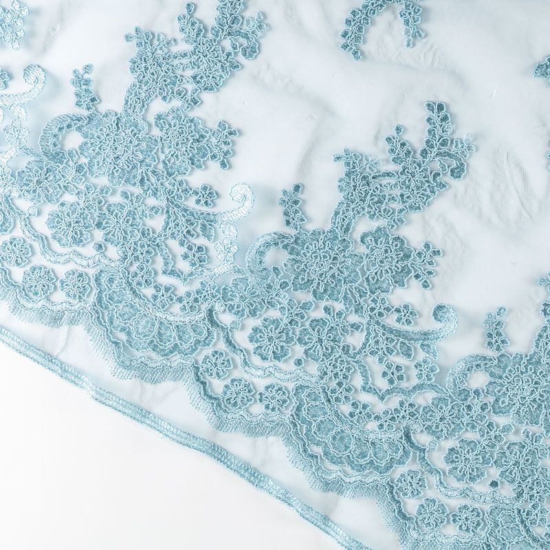 Вышивка на сетке приглушенного голубого оттенка с флористическим узором. Полотно мягкое, легкое и пластичное, хорошо тянется. Сетка не жесткая, приятная к телу. Узор вышит мягкой пряжей, образуя красивую фактуру, имитирующую ручную вышивку, и оформлен кордовой нитью. С обеих сторон ткань украшена симметричными фестонами, что придает полотну законченный и нарядный вид. Великолепно будет смотреться в нарядном вечернем платье, платье на выпускной бал, в блузках, топах. Набирается для изделя объемом.