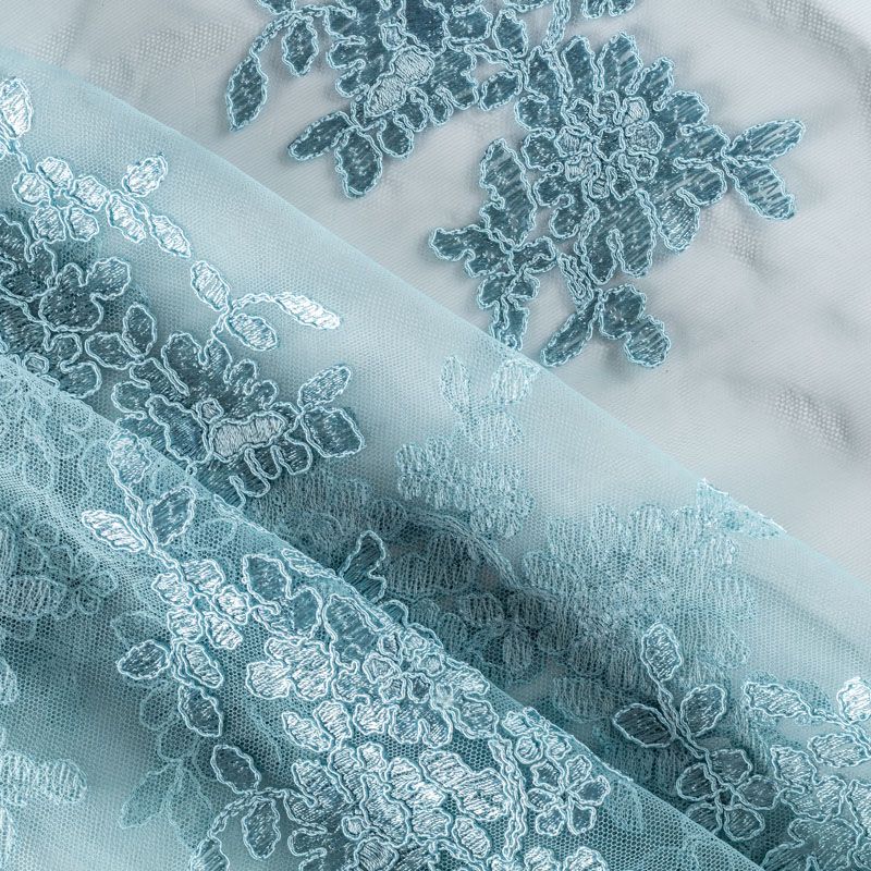 Вышивка на сетке серо-голубого оттенка с флористическим узором. Полотно мягкое, легкое и пластичное, хорошо тянется. Сетка не жесткая, приятная к телу. Узор вышит мягкой пряжей, образуя красивую фактуру, имитирующую ручную вышивку, и оформлен кордовой нитью. С обеих сторон ткань украшена симметричными фестонами, что придает полотну законченный и нарядный вид. Великолепно будет смотреться в нарядном вечернем платье, платье на выпускной бал, в блузках, топах. Набирается для изделя объемом.