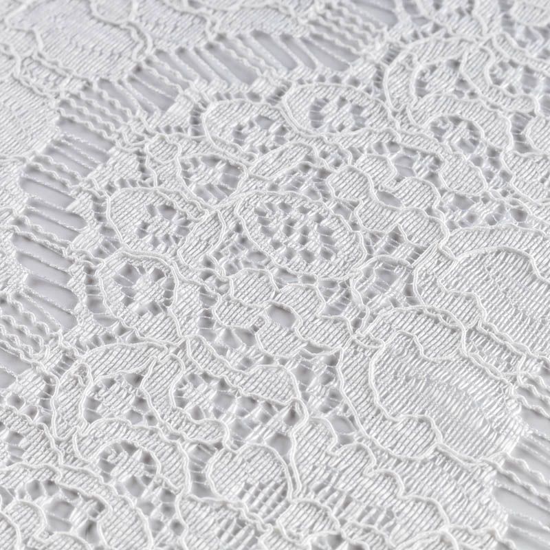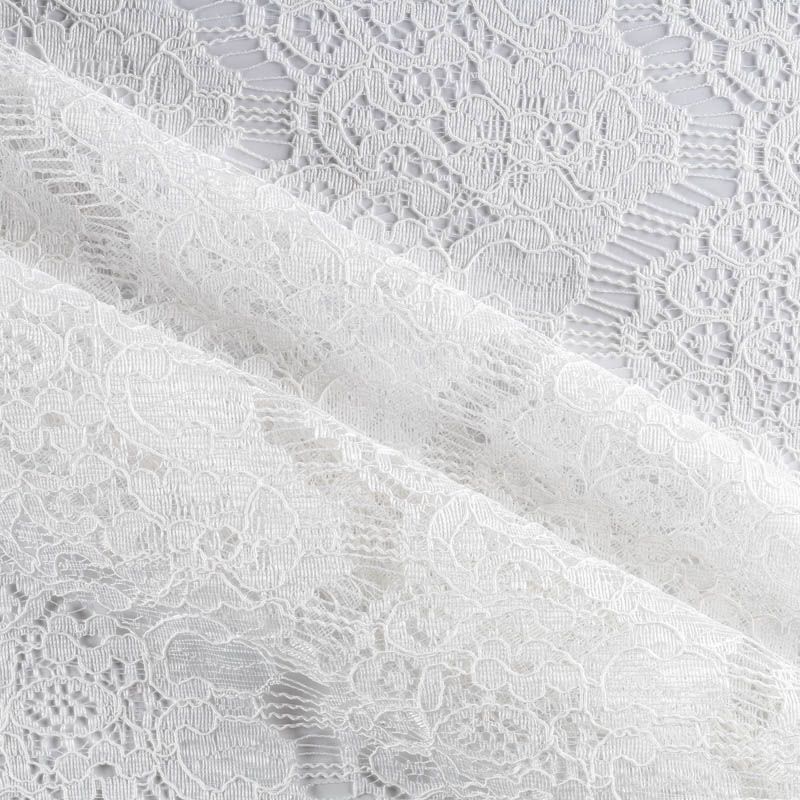 Кружевное полотно мягкое, эластичное, прекрасно драпируется, очень приятное на ощупь. По двум противоположным сторонам гипюр украшают фестоны. Эта кружевная ткань прекрасно подходит для пошива праздничного платья, костюмов прямого кроя, изготовления декоративных элеметов. Требуется подклад.
