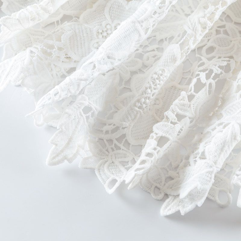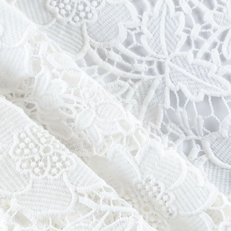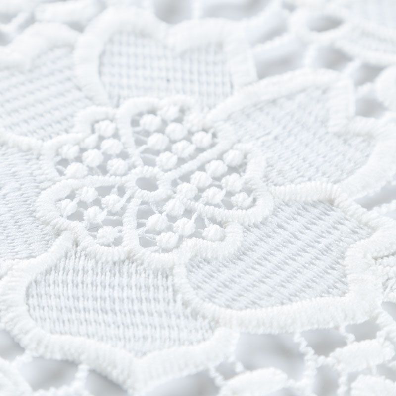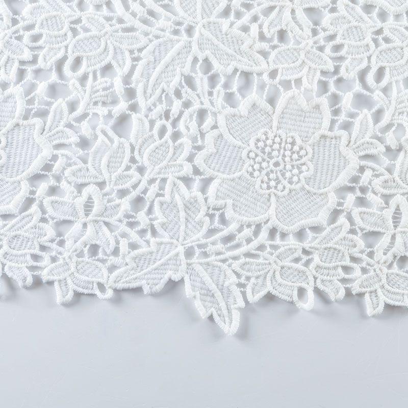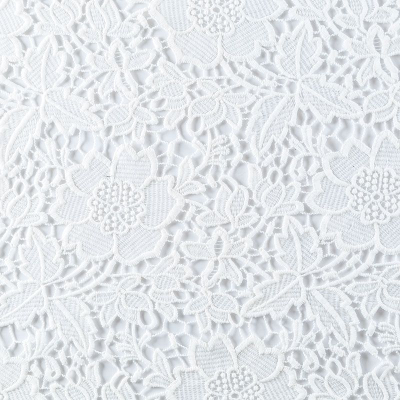 Итальянский гипюр-макраме представляет собой ажурное полотно, имеющее рельефную текстуру с цветочным ажурным плетением по всей ширине. Материал прозрачный на теле и на просвет, требуется подклад. Всегда актуален при создании утончённых и роскошных нарядов, придавая им дороговизны и оригинальности. Может использоваться для пошива платьев, костюмов прямого кроя, изготовления декоративных элеметов.