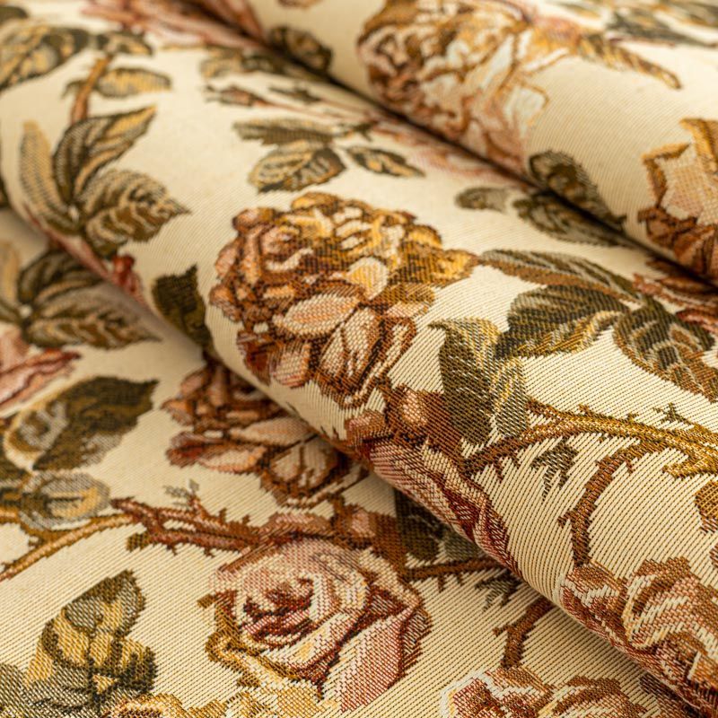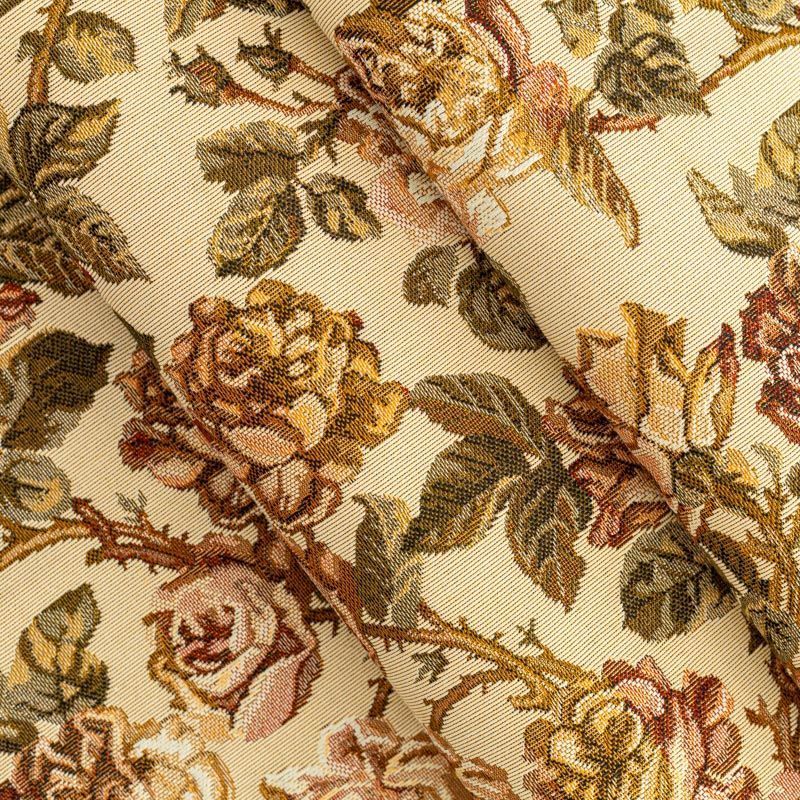 Гобелен представляет собой ткань, выполненную перекрестным плетением нитей с одномоментным созданием сюжетной или орнаментальной композиции. Это плотный материал высокую прочность и износостойкость. Гобелен используют для пошива плотных светонепроницаемых штор, декоративного домашнего текстиля и аксессуаров, в мебельном производстве для обивки мебели. Так же применяется в рукоделии: модные кошельки, сумочки, пояса и другие аксессуары и при изготовлении дизайнерской одежды. Цветочный рисунок - настоящее украшение, придает изделию естественность, чувственность и налет романтичности.